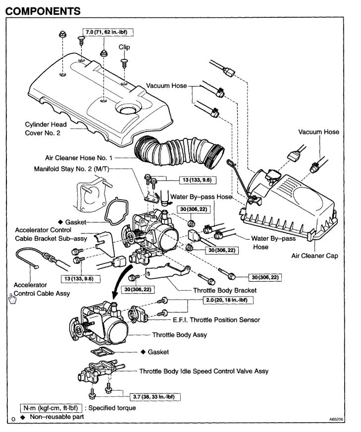 The IACV is on the throttle body and the mass airflow meter is on left side of engine compartment in air intake duct.