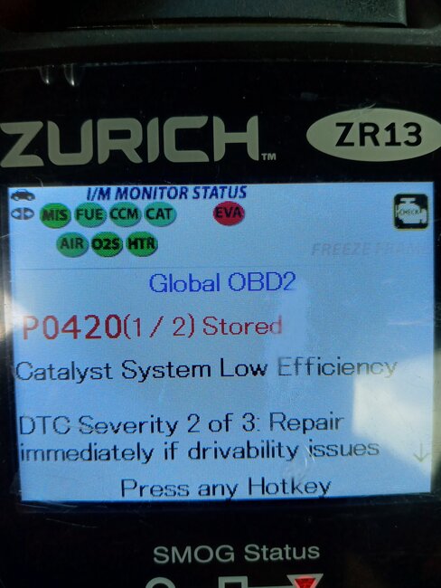Two months previously had a service engine check light and changed the purge solenoid valve which fixed that error code. Not sure of something in that system many have a problem. This truck is driving me crazy