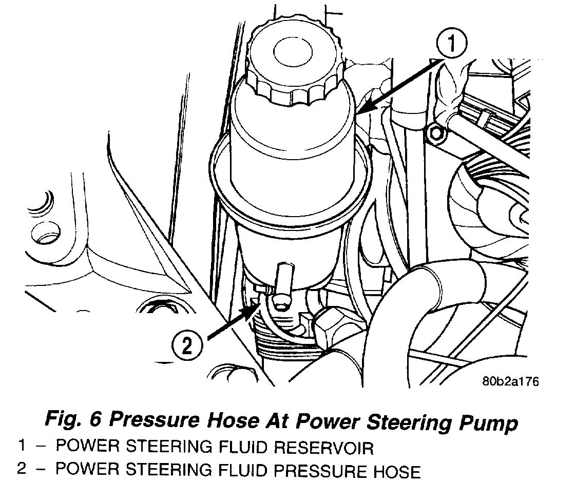 6. Remove the power steering fluid pressure hose from the pressure fitting on the power steering pump.