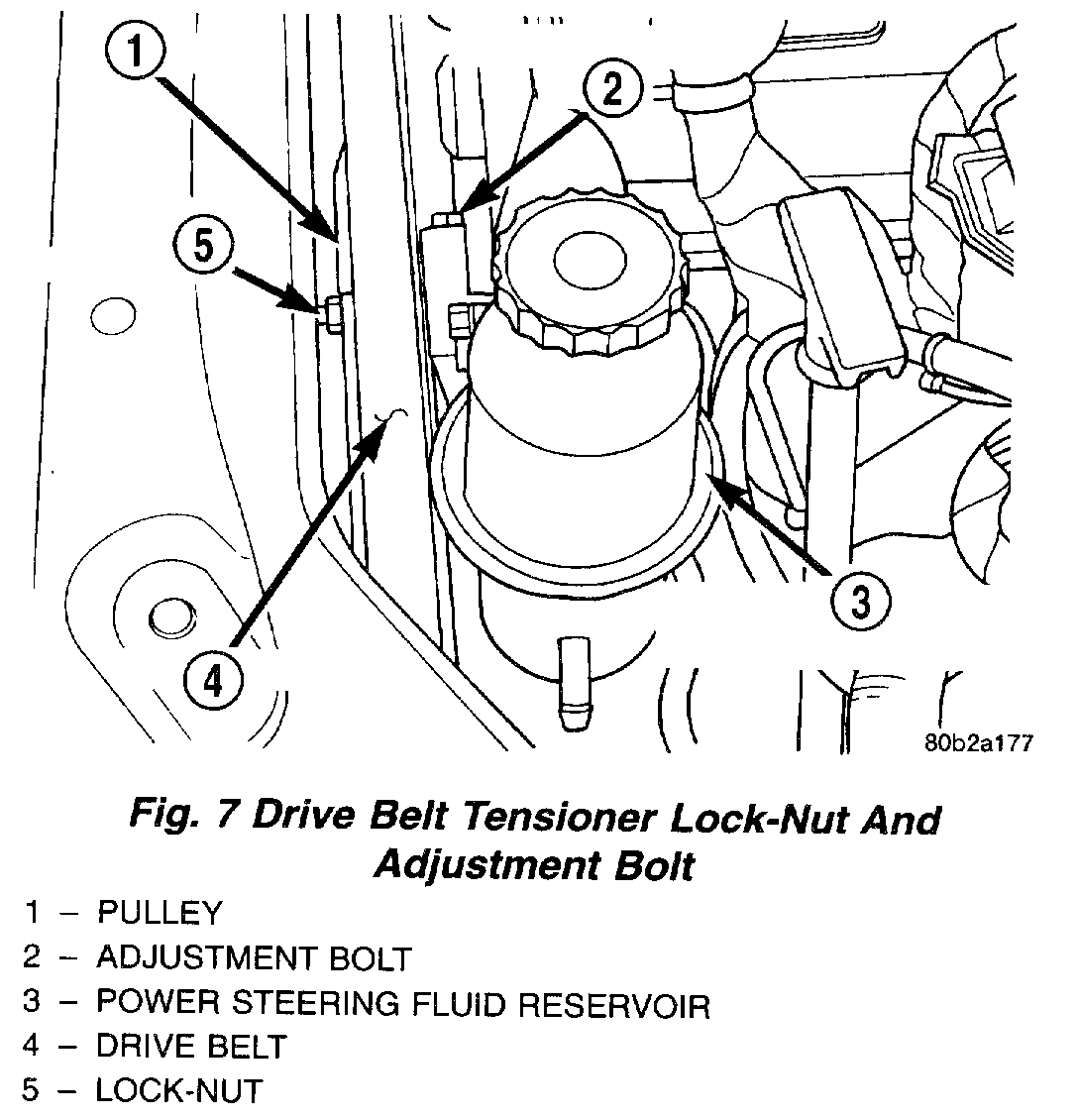 9. Using the adjustment bolt remove the tension from the drive belt for the power steering pump.