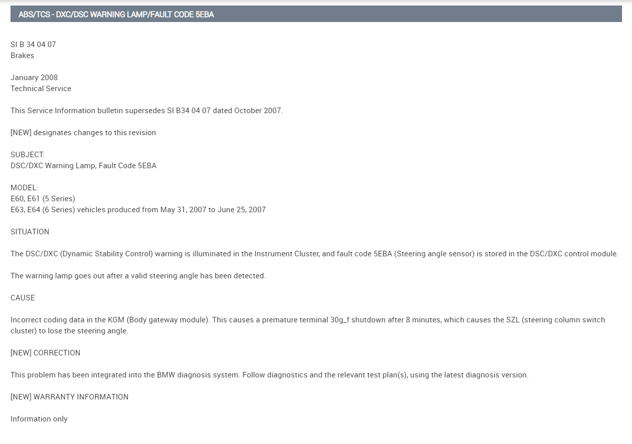 The used SAS will need to be coded in to the DSC with a suitable diagnostic tool such as BMW ISTA, Autologic or other device.