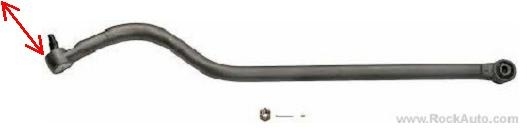 The track bar is attached on the driver's side frame, near the steering gear box, with a ball and socket. On the passenger side it's attached to the axle housing with a rubber bushing. The bar keeps the axle from shifting sideways. Watch that ball and socket while a helper moves the steering wheel back and forth a quarter turn each way about twice per second. If you can see any visible vertical movement between the socket and the stud, replace that bar. Chrysler allowed.080" vertical movement before it was considered worn enough to replace under warranty. They never got that bad because as little as.030" movement was more than enough to cause a steering wander complaint.