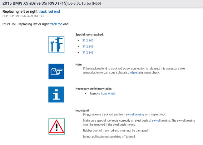 I am experiencing a knocking/rattle at Low speed on uneven Road surfaces. I have looked for a rack repair kit but cannot find one for an f15 x5.