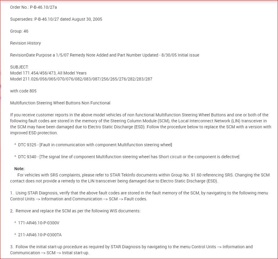 Also, you may have a code in the system indicating the SCM has failed. I attached a TSB that indicates this is a common issue. It appears the module fails because of static discharge from the driver's finger and the button shorts out the module. The only correction for this is the replace the module. However, just be careful if you are going to replace this yourself because it appears that it needs to be initialized with a scan tool.