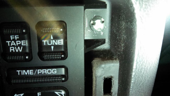 Cannot find specialty tool to remove the two screws on the factory installed double din stereo. They have three slots on the outside of each head of the screw.