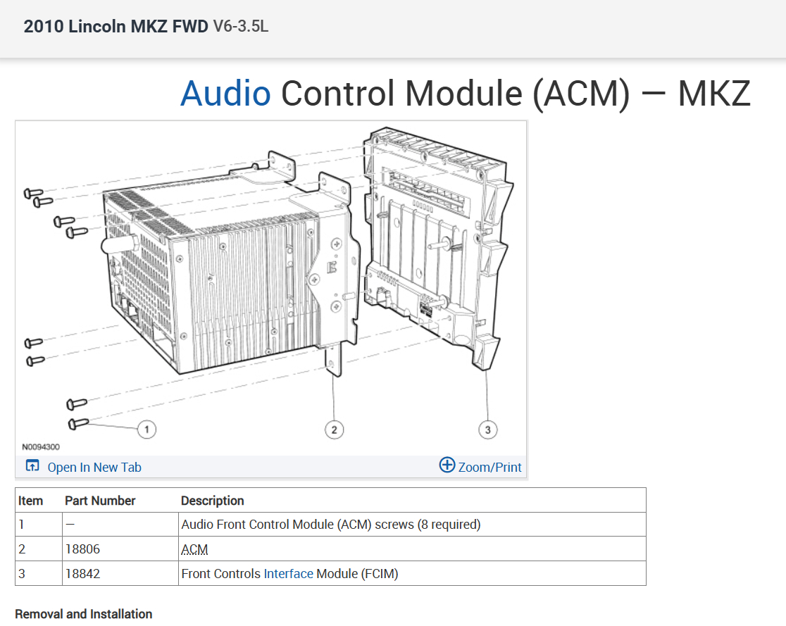 It is not necessary to remove the Audio Front Control Module (ACM) to retrieve the part number. For additional information, refer to Audio Control Module (ACM) Self Diagnostic Mode