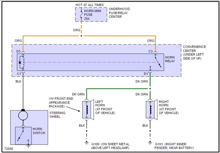 I found a HORN diagram in "Prodemand" for a GMC K1500