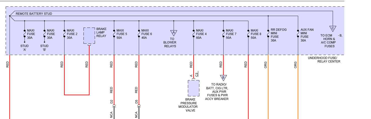 Man this truck is killing me. Bought as a project and im sorting thru a lot of hairy wiring to get the fuel pump to spit ultimately. However, please take a look at this pic and let me know if the gray 2 wire connector should be there. The image is the backside of the fuse/relay panel under the hood and the bottom is at the top so the fuses in question are initially on the top right, battery 50A and Lighting 50A and they are jumped to the EcmB and RR defog buses with the 10g 2-wire connector via main bus. Is that supposed to be there or is it retarded? I have so many electrical issues it seems like this is the root because it would give full time power things that shoukd only have key on run or accy position. Any help would greatly be appreciated. Steve