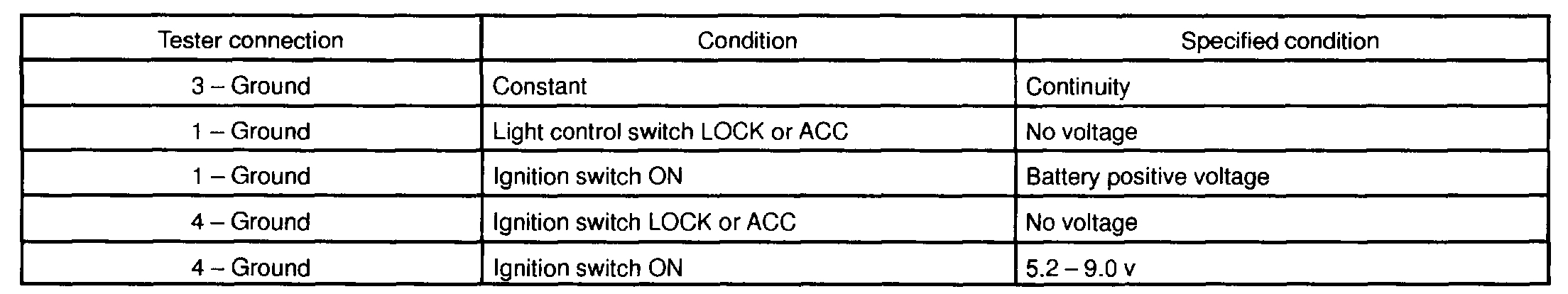 If the circuit is not as specified, inspect the circuit connected to other parts.