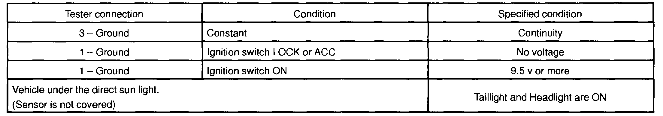 INSPECT AUTOMATIC LIGHT CONTROL SENSOR CIRCUIT