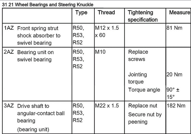 - Feed in spring strut and push steering stub upwards until it reaches the limit position.