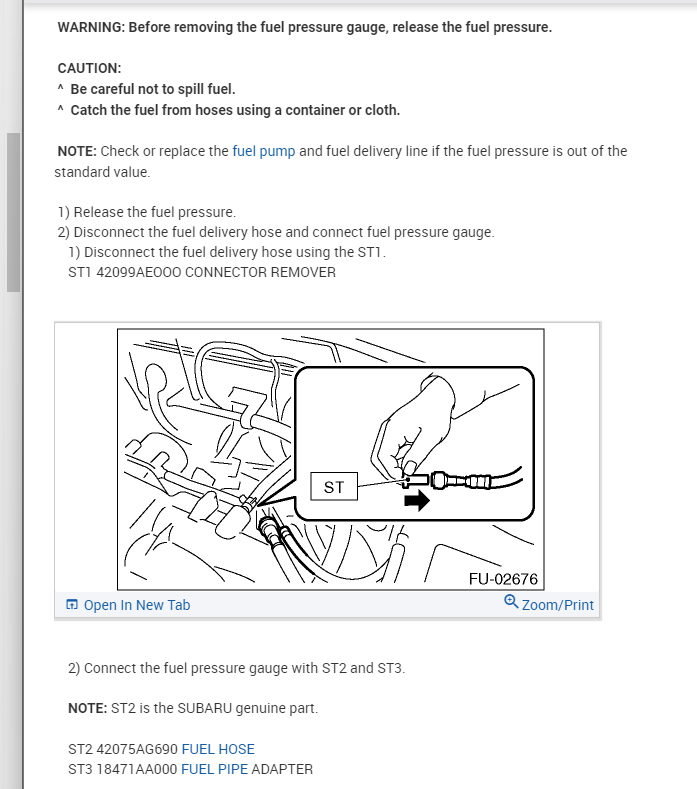 I attached the info below for the fuel pressure test from the manual. Let's run through this and let me know what you find. Thanks