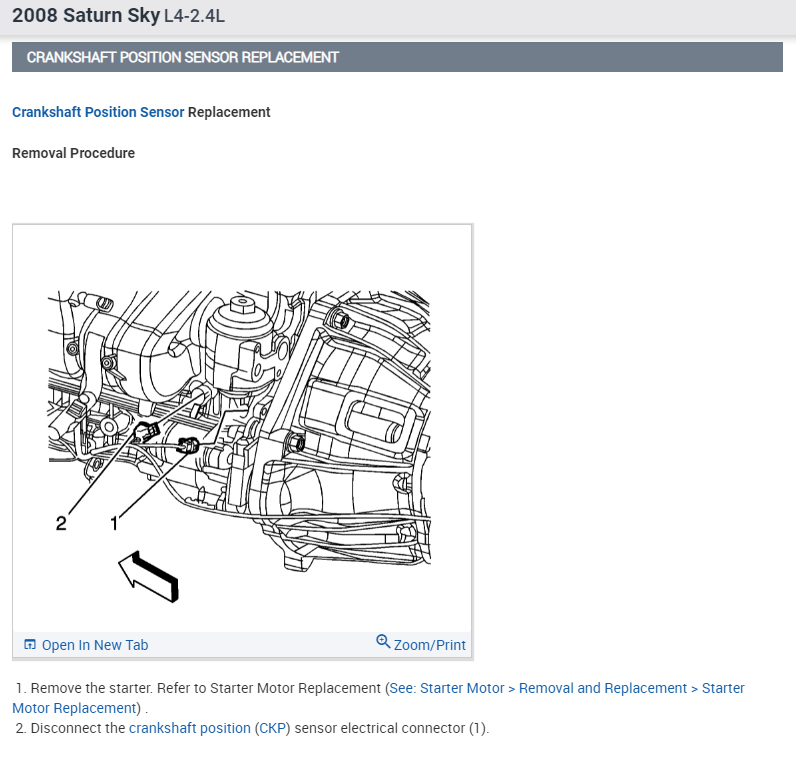 I have attached diagrams showing the crank sensor replacement procedure. Keep in mind that this sensor does need to be programmed after replacement.