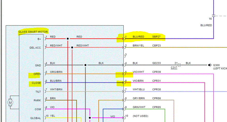 Fuses 23 and 27 are the power supplies. Fuse 27 runs the motor to open the sunroof.