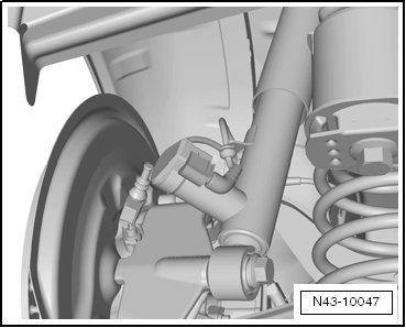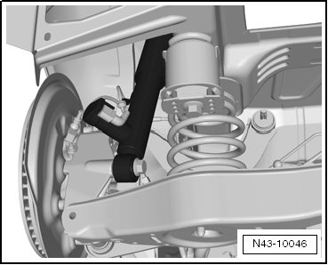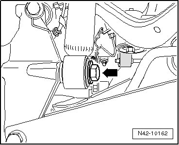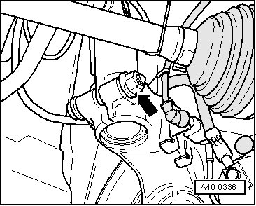 - Pull off wheel bearing housing downward from strut tube and lower using Engine/Gearbox Jack (VAG1383A) as far until strut tube hangs freely.