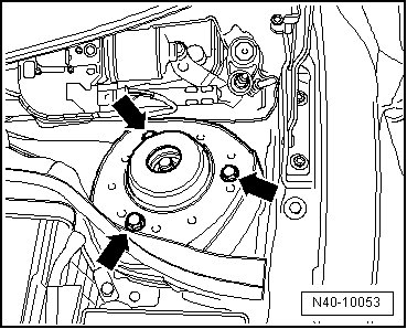 - Remove the bolts - arrows - for upper strut mount and remove suspension strut.
