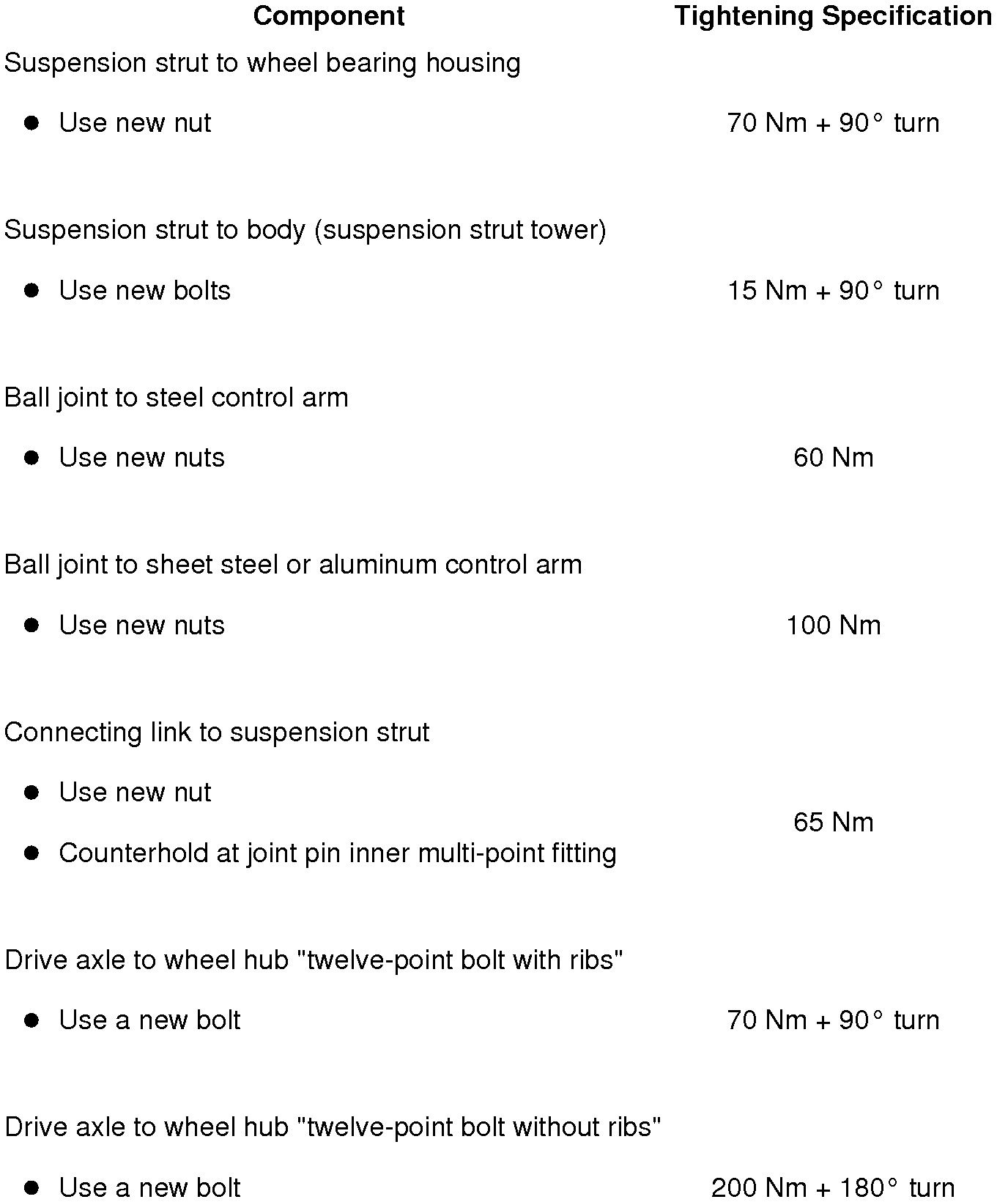 - Attach suspension strut to wheel bearing housing and secure suspension strut using socket head bolt and new nut.