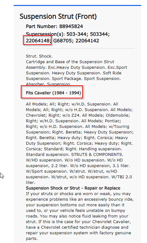 I’m having issues finding loaded front struts for the vehicle listed above (wagon). Will the struts off of a 1991 Cavalier fit the 1994? Thank you in advance.
