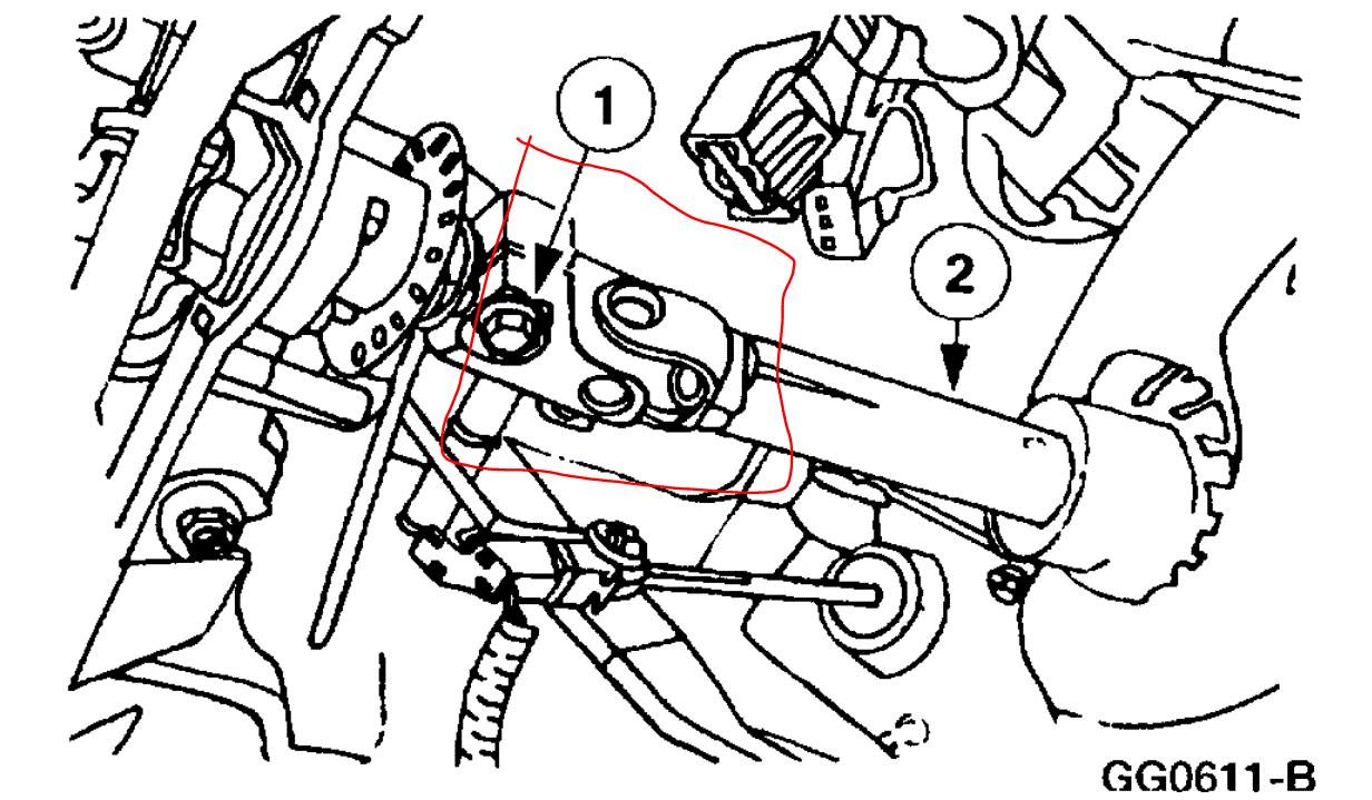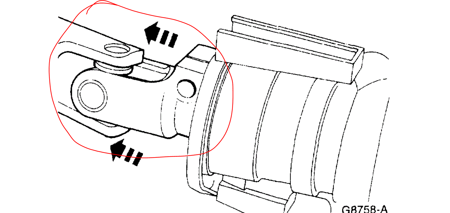 Also, check to see if there is excessive play in the intermediate steering shaft. The last two pics below show the universal type joints where they can develop play. The first is in the vehicle and the second is where it attached to the steering gear.