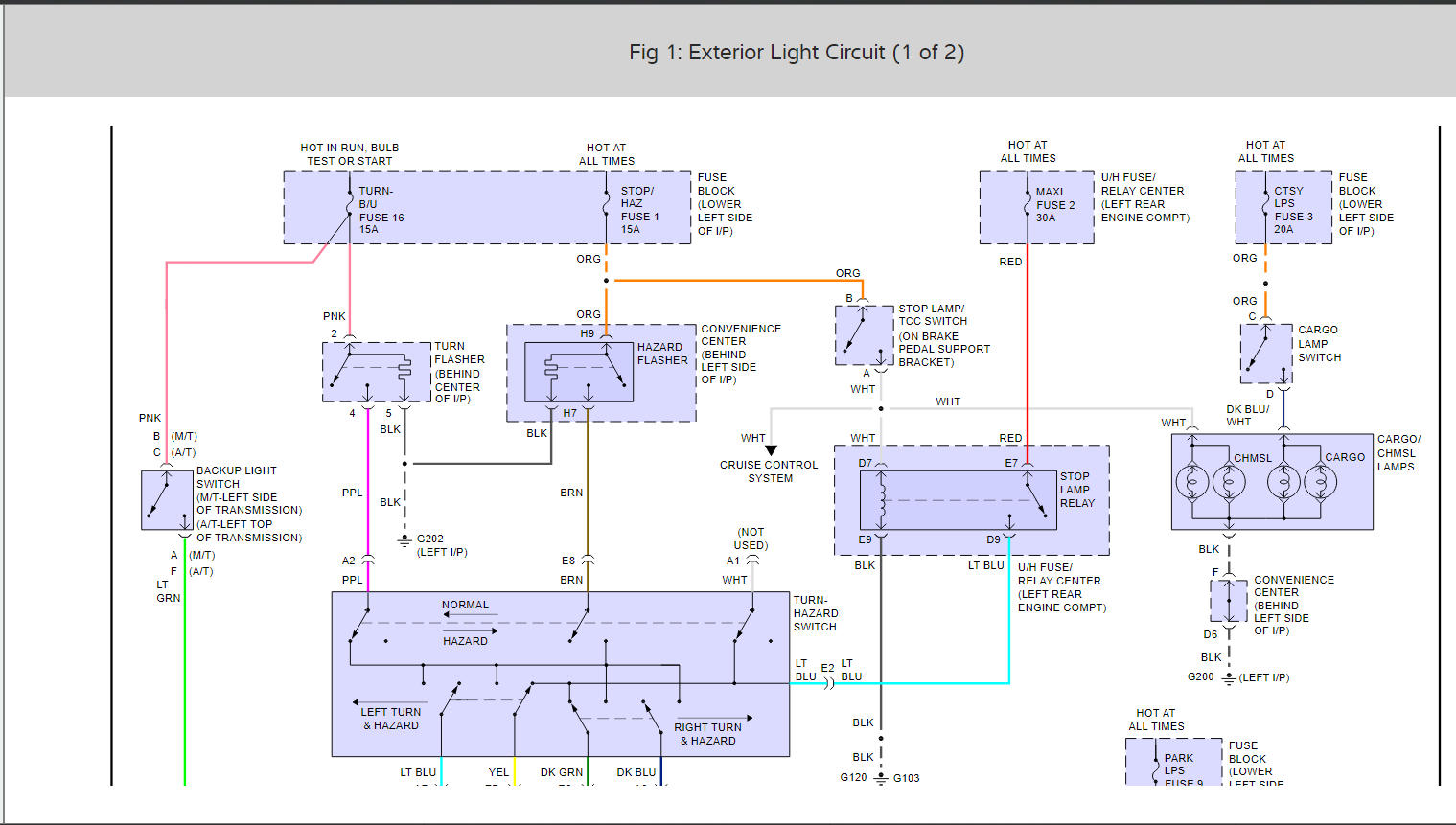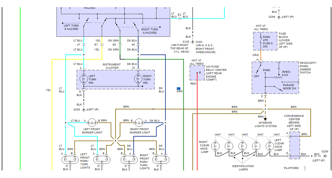 It is definitely one of the trailer wiring connections. It was old and cracked and upon checking across for continuity, one of the four pairs was bad. I tried to connect all of the three wire connections separately. This proved to be a newbie mistake as suddenly many different problems sprang up. License plate lights blinking instead of turn signals. Blowing the number one fuse for stop lamps, etc. I ended up tearing out the added wiring by the previous owner. I then tried cutting out the trailer wiring altogether, still having problems. So, I would like to check for a ground short, but I'd like to have the block diagram.