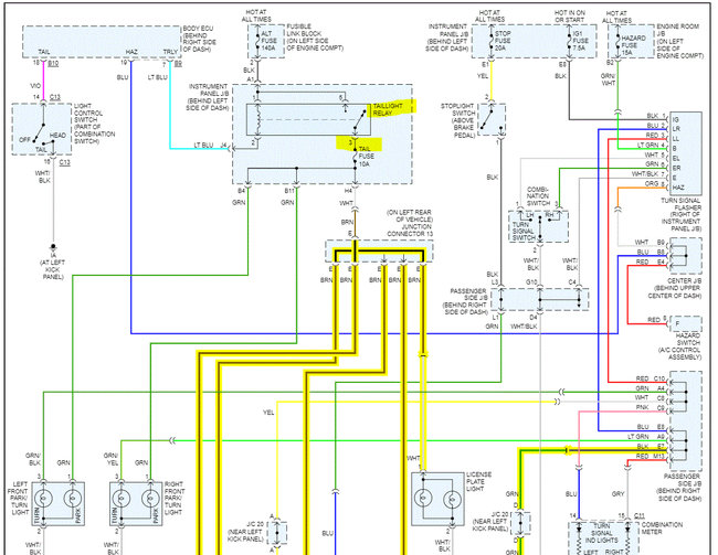 I backed into a tree a few years back and broke the passenger taillight. All lights still worked fine so I taped it up good with all the red and clear tape necessary to avoid a ticket. Finally, a few years of driving tapped up my brother bought a new taillight for my car so he could use it to take his driving test. It was super easy to install but now only the reverse light comes on.