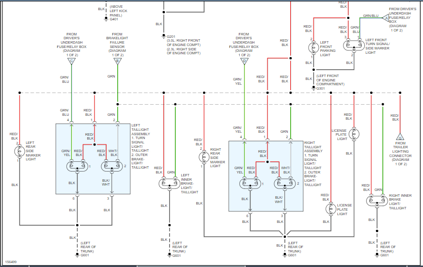 Right front tire blew out an parts of tire came up and destroyed the head light assembly and pulled the wires from the headlight. It also pulled the wiring apart for the headlight. I repaired the wiring and installed new headlight. Front lights work okay, all rear lights work except the taillights. Checked all fused I could find and all were okay. Is there a fuse or relay some where I don't know about?