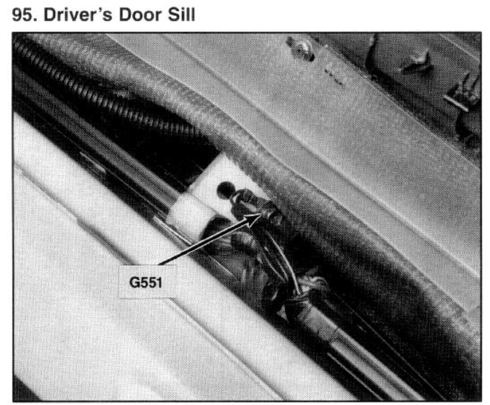 G551 is down on the driver's door sill, looks like you'll have to pull back a small section of carpet. There is also a water intrusion TSB for that location, so see if there is any moisture under the driver's side carpet.