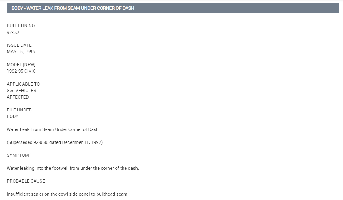 Diagrams 4, 5 show the affected area for possible water intrusion. So, check under the driver side dash area for any corrosion, especially if there is a fuse panel located there.