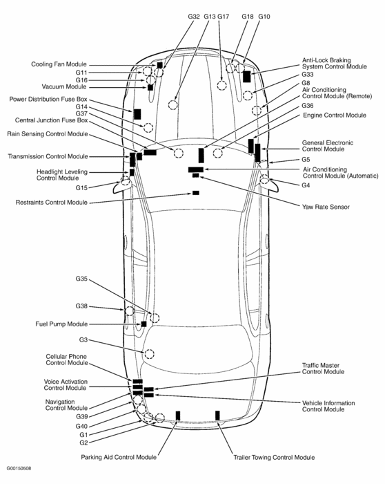 Fuel System 2.5L and 3.0L vehicles Fig. 30: Fuel System Components (2.5L And 3.0L) Courtesy of JAGUAR CARS, INC. The electronic returnless fuel system utilized has the following advantages: reduced fuel tank vapor. Requires less electrical power. Does not require a fuel return line. The intelligence of this system is contained within the engine control module (ECM). The ECM determines the required fuel flow and communicates this information to the fuel pump controller. The fuel pump controller has the fuel pump driver functions fully integrated into the microprocessor. The ECM calculates the frequency and determines the current required by the fuel pump to maintain the correct fuel pressure at the fuel injectors. The fuel tank is of a saddle design which incorporates two sender units. The right-hand side houses the fuel pump module. The left-hand side houses the transfer pump module. CAUTION:The use of supplementary oil or fuel additives is not approved unless specified by Jaguar Cars in the form of a service communication or directive. Fuel is supplied at high pressure to the injectors via a fuel rail which incorporates a fuel pressure and a fuel temperature sensor. The ECM increases the fuel pressure to minimize fuel vapor formation to maintain fuel flow across the injectors. An inertia type fuel cut-off switch will cut power to the fuel pump module in the event of an accident.