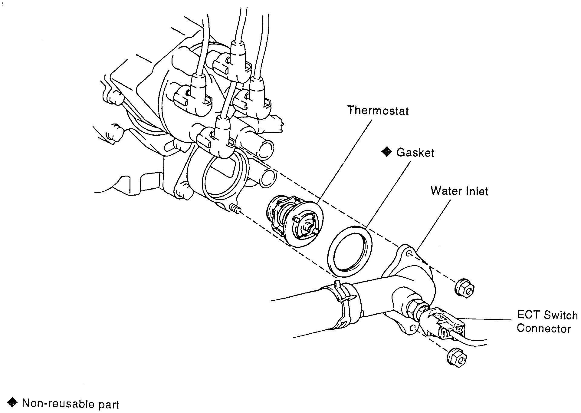 3. Remove water inlet and thermostat as follows: