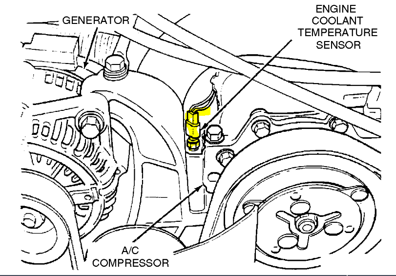 The coolant temperature sensor screws into the intake manifold next to the thermostat housing. See pic below.