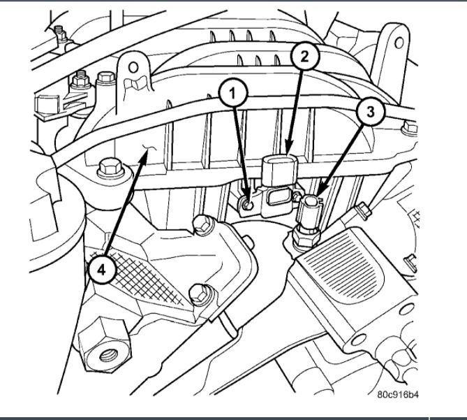 The Engine Coolant Temperature (ECT) sensor on the 3.7L engine is installed into a water jacket at front of intake manifold near rear of generator.