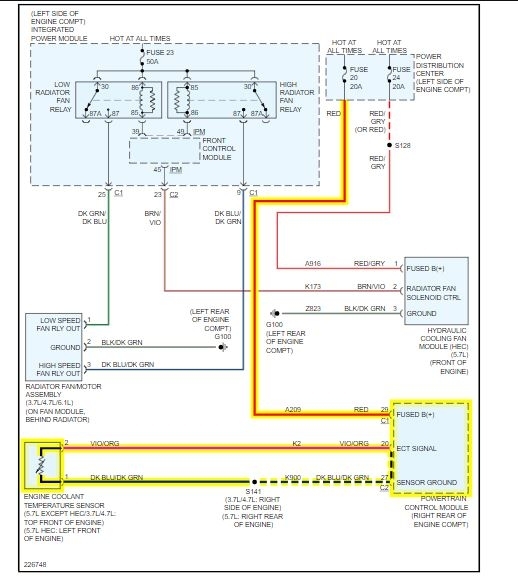 At key-on, the Powertrain Control Module (PCM) sends out a regulated 5 volt signal to the ECT sensor. The PCM then monitors the signal as it passes through the ECT sensor to the sensor ground (sensor return).