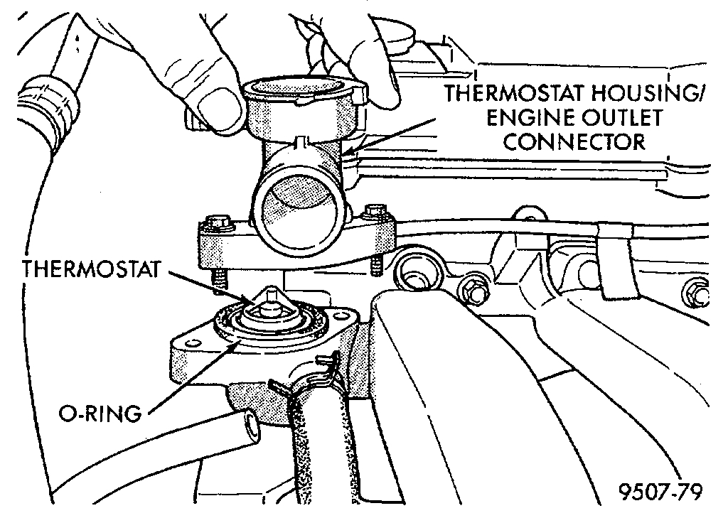 3. Remove thermostat an O-ring assembly, and clean sealing surfaces.