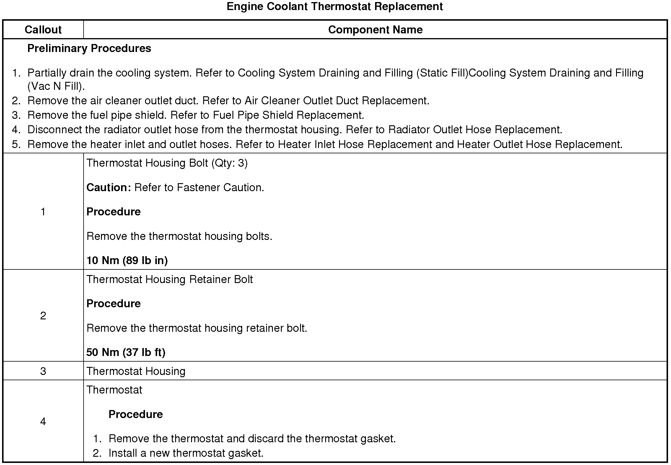 The directions specific to your vehicle for thermostat replacement are listed in the attached pictures.