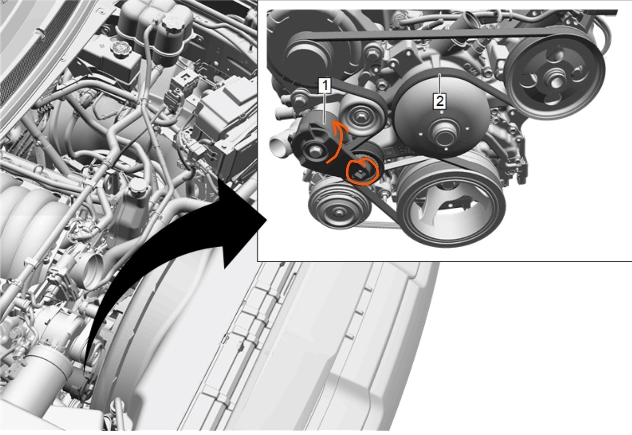 Am unable to find the tension pulley to insert a breaker bar for belt removal. Have not able to find a pic on-line to show this.