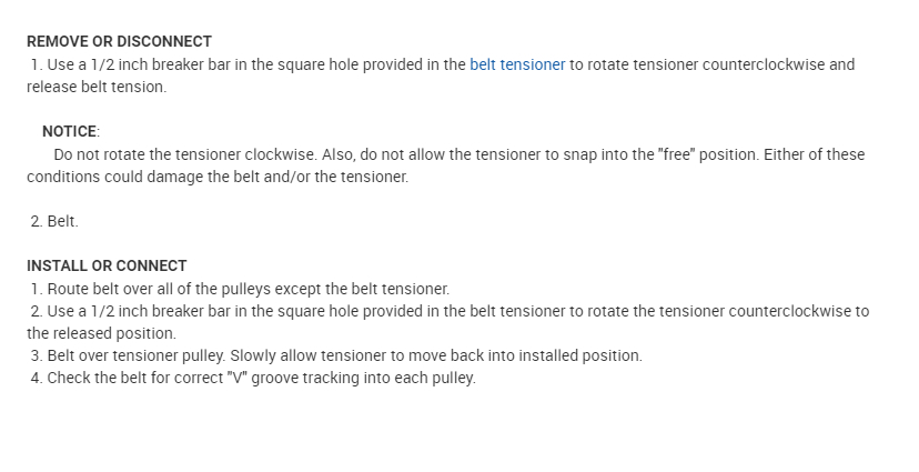 Cannot get movement in tensioner to install drive belt, does not seem to follow the common description of a 3/8-inch socket adjustment as is the common answer.