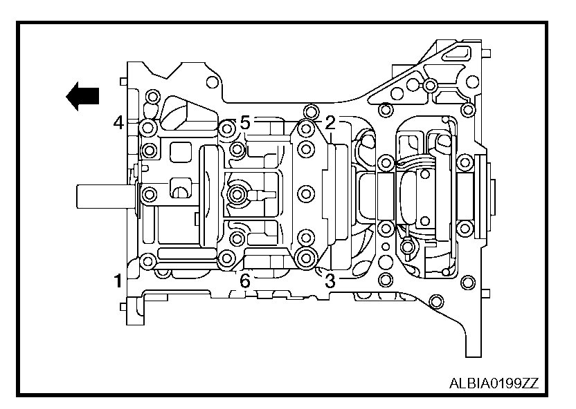 7. Remove cylinder head loosening bolts in the order as shown, using power tool.