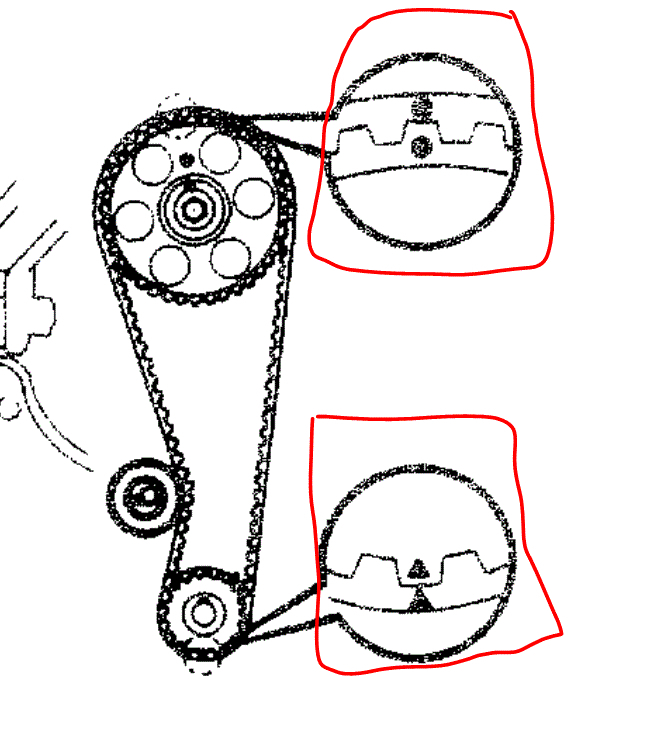 If you look at the first picture below, it shows the timing marks. If you are replacing the belt, here are the directions for removal and replacement. All pics correlate with the directions.