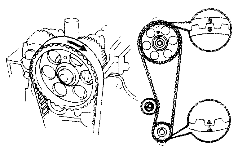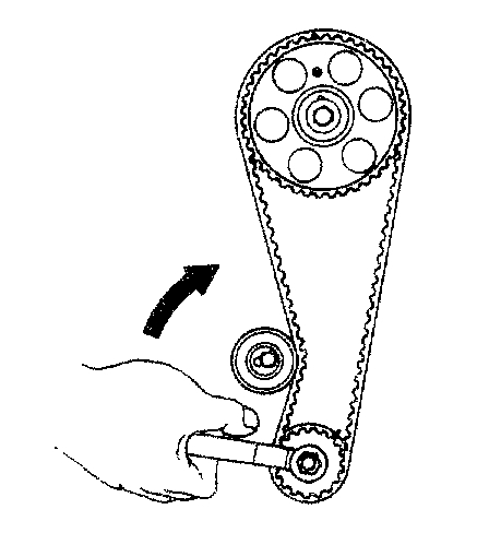 HINT: If reusing the timing belt, align the points marked during removal, and install the belt with the arrow pointing in the direction of engine revolution.