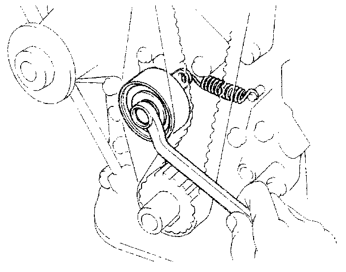 Timing belt deflection: 5 - 6 mm (0.20-0.24 in.) At 20 N (2 kgf, 4.4 lbf)