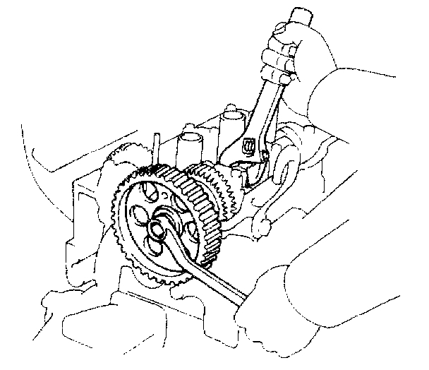 (c)Hold the hexagonal wrench head portion of the camshaft with a wrench, and tighten the timing pulley bolt.