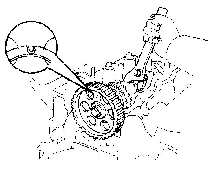 (d)Turn the hexagonal wrench head portion of the camshaft, and align the hole of the camshaft timing pulley with the timing mark of the bearing cap.