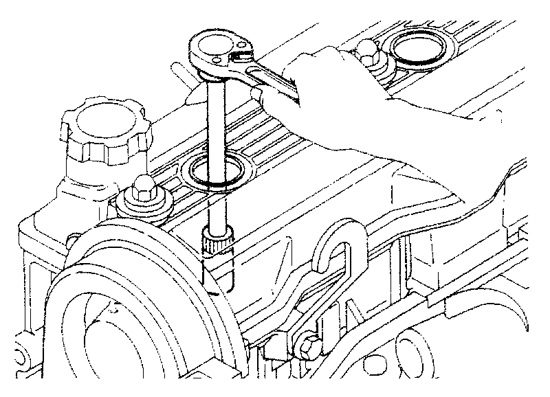 NOTICE: Be careful not to damage the cylinder head with the wrench.