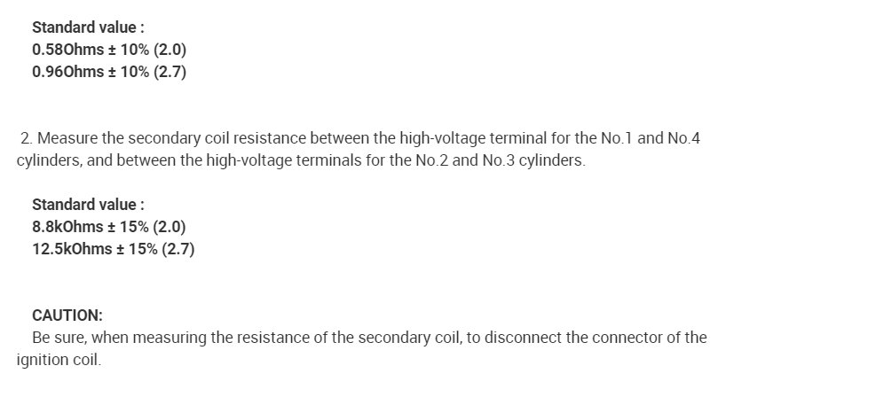 This sounds like you could have a problem with your vehicle's ignition coil. In the diagrams down below I have included a troubleshooting list and instructions on how to test your vehicle's ignition coil. You will need to use a Digital Multi-meter [DMM] to do the testing, so I have included a link below for you if you are unfamiliar with how to use one.
