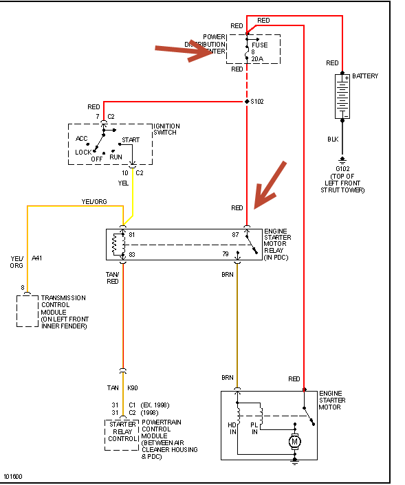 To bypass the relay, remove it, then use a stretched out paper clip or piece of wire to jump terminals 30 and 87 or the two with arrows. We can do all the testing right at that socket. You'll need a digital voltmeter or test light.