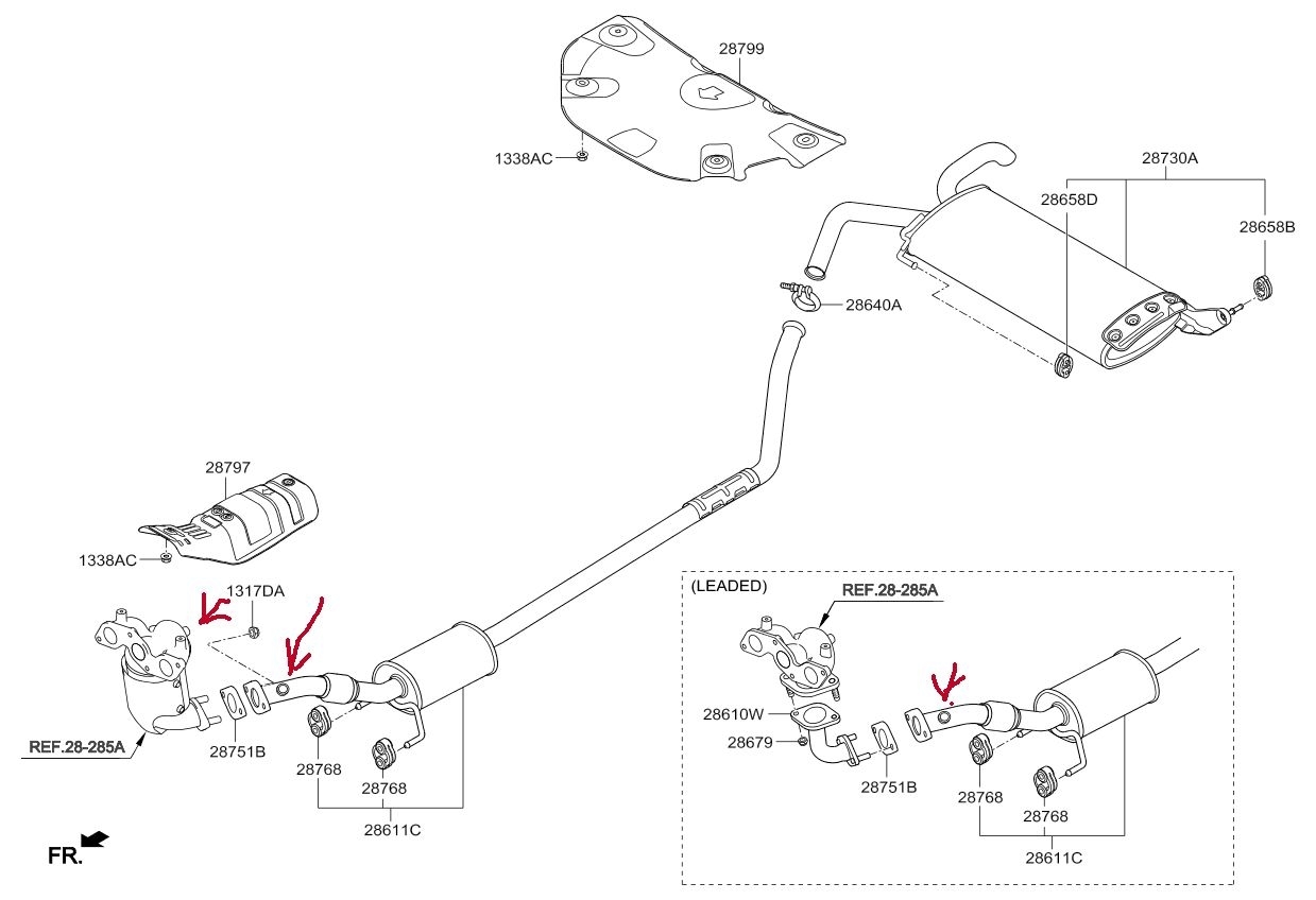 This vehicle started this problem after the exhaust system was repaired and it happened that the technician cutoff the exhaust pipe o2 sensor location together with the sensor. When I diagnose, I didn't see the fault code on the O2 sensor, I used live data to read the parameter and it showed not supported by vehicle, at this point I check and notice the sensor was not there. Please I need the complete exhaust diagram to see the sensor location and I will put it back. Thanks