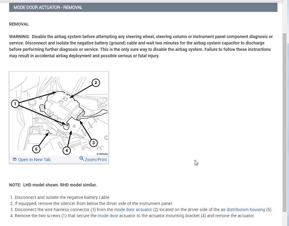 This door is actually called the mode door. It is unlikely the gear on the door that has failed but we need to remove it to check. More then likely the plastic gear on the actuator is completely stripped and just allows the door to flop around.
