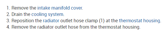 If you look at the attachments below, they provide the directions specific to your vehicle for thermostat replacement. Also, I included the bleeding procedures. Make sure not to mix the original dex-cool coolant from GM with other types unless it is a universal type indicating it can be used with Dex-cool. This is very important.