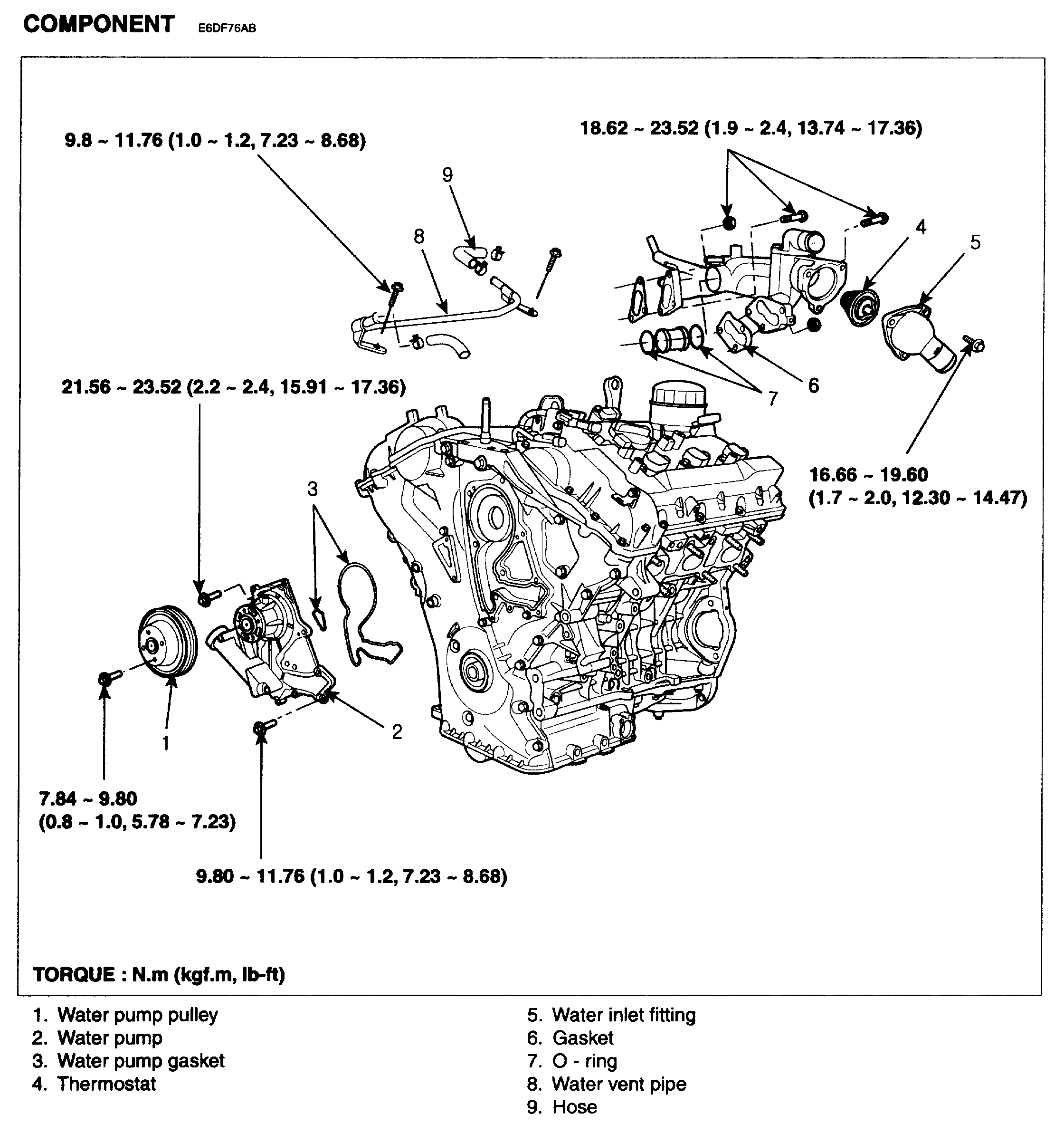 Tightening torque 16.66 - 19.60Nm (1.7 - 2.0kgf.m, 12.30 - 14.47lb-ft)